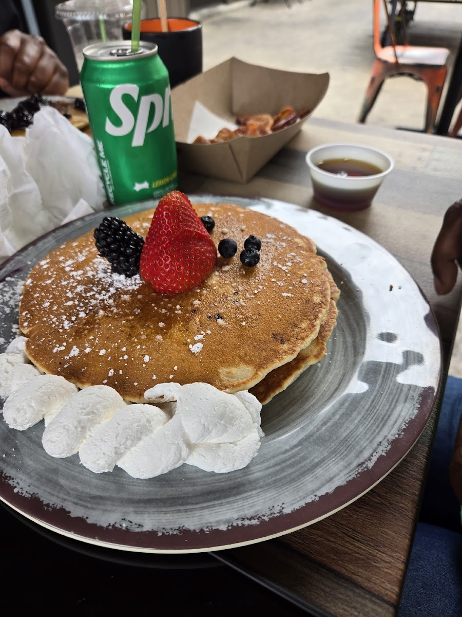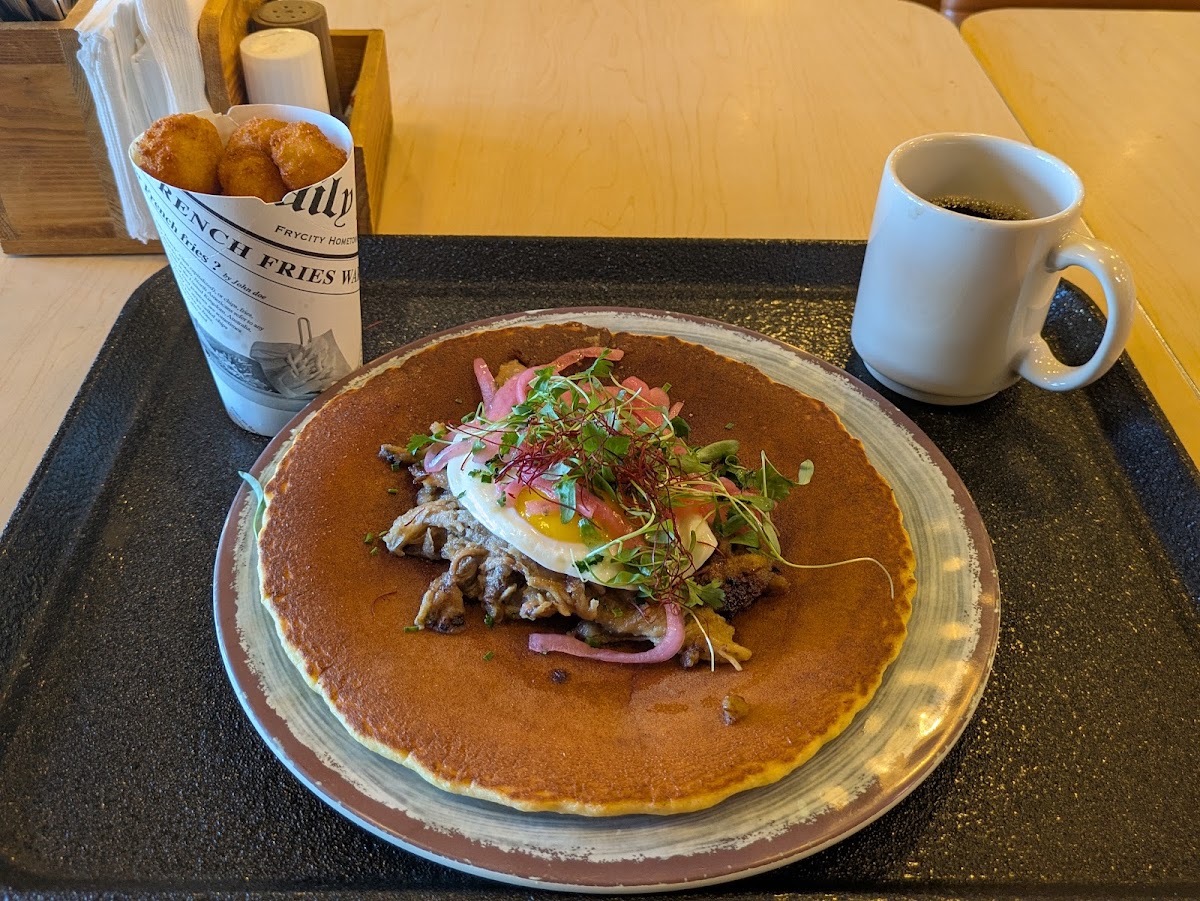 Love this place! There is a line on the weekend so get there early for breakfast. We've been twice in the past month and love going for brunch with friends or even taking the kids there before we head to the zoo. They're outdoor area is top notch. Nothing like it in the area. It's a huge fencing, eclectic collection of outdoor furniture and even a large playground for kids to enjoy. And now let's get into the food. The food is phenomenal. I've tried multiple items on their menu from pancakes to empanadas to the breakfast sandwich, all amazing and more.