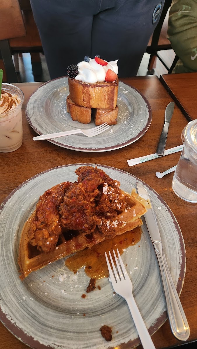 You place your order and find your own sitting. There is also outdoor sitting on sides, front and back of restaurant. There are more indoor sitting next door which you get to by going through the back of the building. Parking is typical, good luck. I got lucky, the second time around driving to find a spot, someone was pulling out right infront of the building. The french toast brought me back to childhood memories. It wasn't an overly eggy. It was a great thick bread and had great flavor. Hash brown keg was very good, food portions are large, you get your money's worth. The stacked pancakes with the whipped cream and berries were to die for. It was delicious. The prices are comparable to the other breakfast spots. I have to warn that being in line and waiting for your food can take a while. They even have a sign at the cashiers that they are not a fast food restaurant so to please be patient. The outdoors area very spacious with plenty of seats and games. They even have a play area for the children. This is a great spot but you have to have patience and prepare for long lines. Warning: The regular grits, they use a special aged cheese.. My sister didn't like it so I told her that I would take it, and she was right. The regular grits did not taste good at all. Maybe someone else may like it but it was beyond nasty to me. Everything else was great.